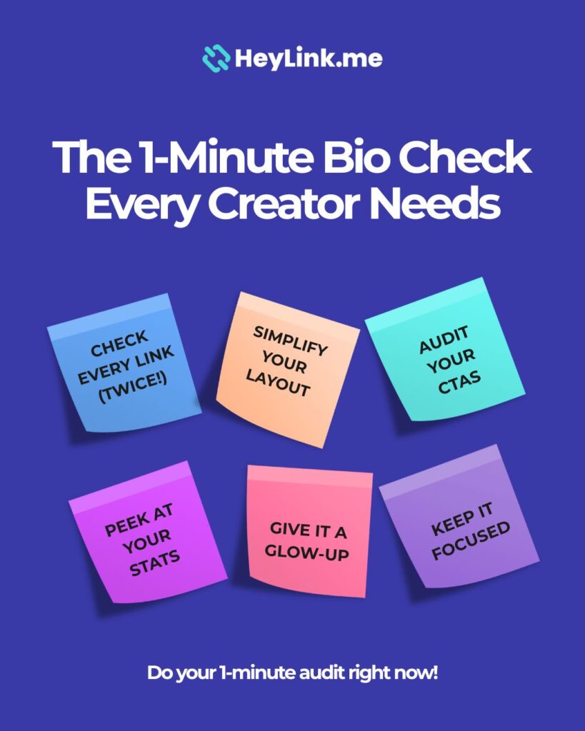 Here’s your 1-minute monthly bio link audit — a quick checklist to keep your page fresh, functional, and converting like a pro.
