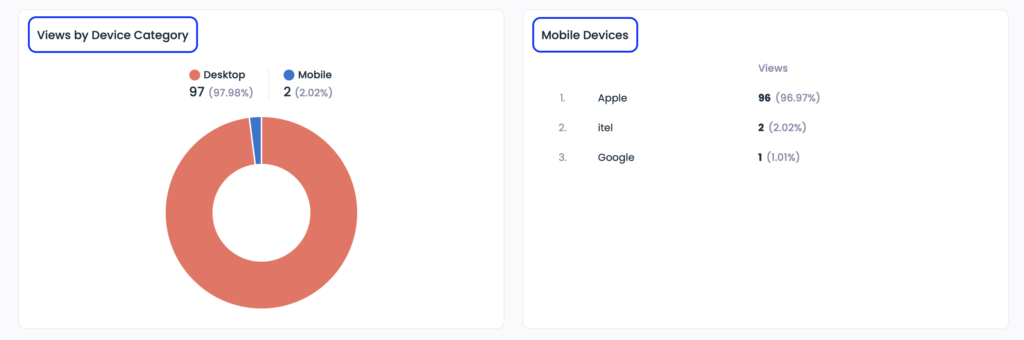 Device types shows breakdown of views by device (mobile, tablet, desktop).